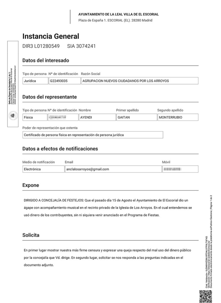 AGRUPACIÓN NUEVOS CIUDADANOS por LOS ARROYOS ha emitido, precisamente, un escrito de QUEJA dirigido al Concejal de Festejos, D. Rubén Herranz Menéndez, censurándole personalmente esa desastrosa iniciativa, y haciéndole las siguientes preguntas: