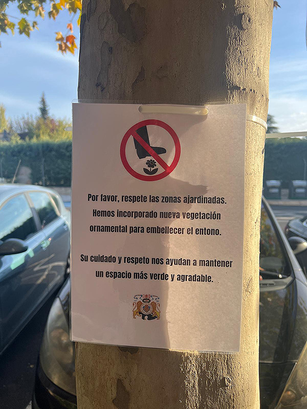 Así que es muy probable que ese ajardinamiento se deteriore con rapidez porque la gente que quiera acceder a su vehículo aparcado no va a querer dar toda la vuelta. También existe la posibilidad de enredarse con la vegetación o las mangueras de riego y caerse.