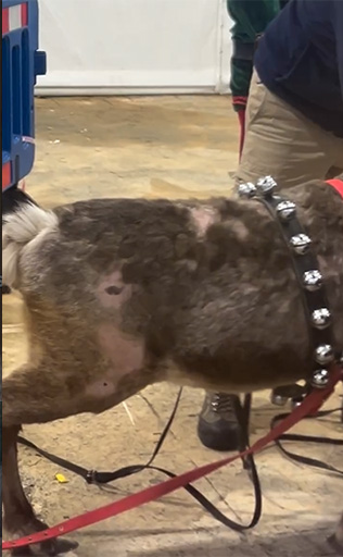 Estos pobres animales, originarios del círculo polar Ártico, estuvieron estabulados el pasado Sábado 13 de Diciembre en plena plaza de Los Arroyos para “colorear” el encendido navideño. Su estado físico y su apariencia externa parecían lamentables. Y así lo han denunciado algunos vecinos en las RRSS con sus fotos y videos. Nos consta que una de las denunciantes ha sufrido represalias, siendo bloqueada en el Facebook municipal, cosa que ha sido corregida horas después tras el escándalo sucedido.
