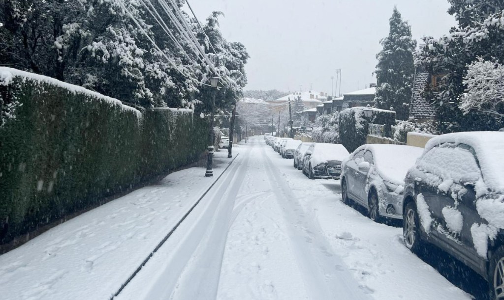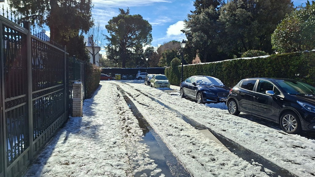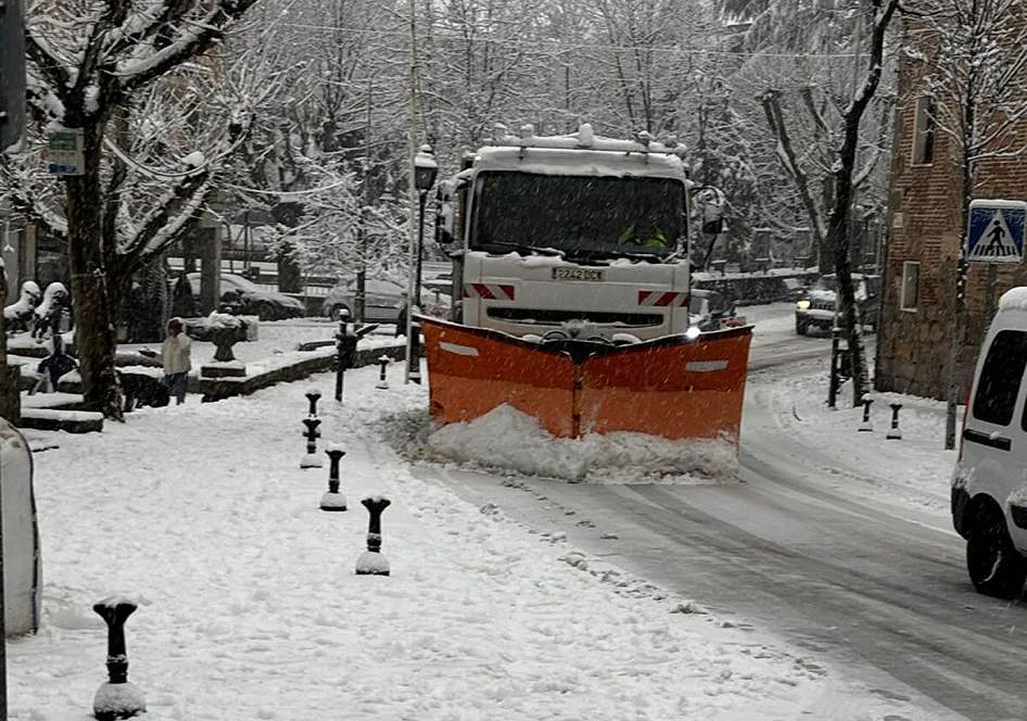 En Montencinar todos bloqueados, pidiendo ayuda hasta las 13.30 h, y quejándose de no ver aparecer la máquina quitanieves, mientras el Ayuntamiento la mostraba exultante en una foto de su web actuando en El Escorial.
